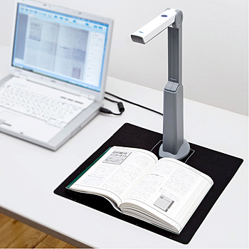 300万画素の高解像度カメラを搭載し、最大A4サイズの原稿に対応。スタンド型で上から撮影するようにスキャンするので、立体物や厚い本も置くだけでスキャンできる。