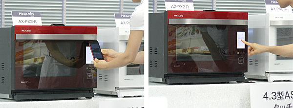 シャープは、7月12日に記者会見を開き、100度以上の過熱水蒸気を用いて食材を焼く「ウォーターヒート技術」を採用したオーブン「ヘルシオ」の新製品として、携帯電話やスマートフォンの赤外線通信で料理の写真を送信できる「PX-PX2」など4モデル計9機種を、8月25日に発売すると発表した。