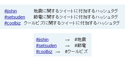 日本のTwitter公式ブログでは、ハッシュタグの前後には空白または句読点を入れるなど、日本語ハッシュタグを使用する際の注意点を、具体例を交えながら説明している。