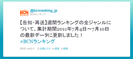 ★Webサイト「BCNランキング」Twitter公式アカウントをフォロー