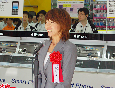 オープンセレモニーには、元マラソンランナーでイメージキャラクターの高橋尚子さんが駆けつけた。「オープン前に店内を見ましたが、欲しいものがたくさんありました。ヤマダ電機はいつもスタッフが笑顔で迎えてくれるお店です。新宿西口館も笑顔が絶えないお店になると思います」とコメントした。