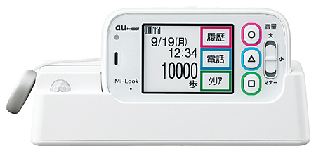 KDDIと沖縄セルラーは、auケータイの新ラインアップとして、京セラ製の「見守り歩数計 Mi-Look(ミルック)」を9月以降に発売する。
