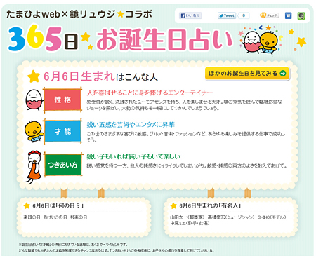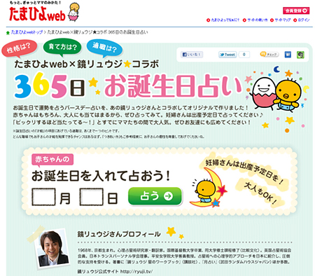 ベネッセコーポレーションが運営する妊娠・出産・育児支援サイト「たまひよweb」は、占星術師の鏡リュウジ氏とコラボレーションした占いコンテンツ「365日お誕生日占い」を公開した。