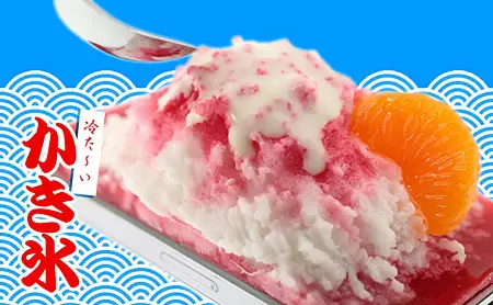 老舗の食品サンプルメーカーの協力で製作した食品サンプルカバーの8月の新作。職人の手仕事による純日本製で、本物と間違うほどの精巧さだ。カキ氷は、高さ約3.9㎝の氷の上にイチゴのシロップをかけ、さらにその上に練乳をたっぷりとかけ、ミカン2切れを添えた。