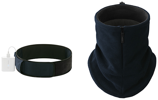 「充電式ウエストウォーマー」(左)と「充電式ネックウォーマー」