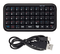 「Bluetooth モバイルキーボード」は、Bluetoothに対応する各種スマートフォンとワイヤレスで接続できる手のひらサイズのBluetoothキーボード。49キーで、HIDプロファイルに対応する。サイズは幅115×高さ60.5×奥行き10mm、重さは約46g。カラーはブラック。実勢価格は3980円前後。
