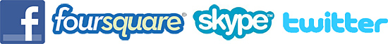 Facebook、foursquare、Twitter、Skypeは、世界中で広く利用されている人気のソーシャル・コミュニケーション・サービス。いずれも、PCやスマートフォン、タブレット端末から利用でき、一部のインターネット対応テレビなども対応している。