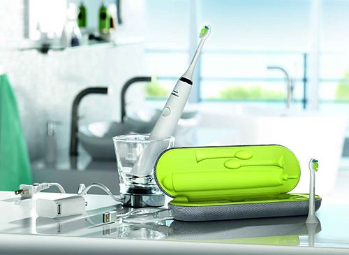 音波式電動歯ブラシ「ソニッケアー」シリーズの最上位モデル「ダイヤモンドクリーン」。ヘッドブラシには、新開発の「ダイヤモンドクリーンブラシヘッド」を採用し、従来製品の「プロリザルツブラシ」でのブラッシングと比較して、歯垢を45%多く除去することができる。