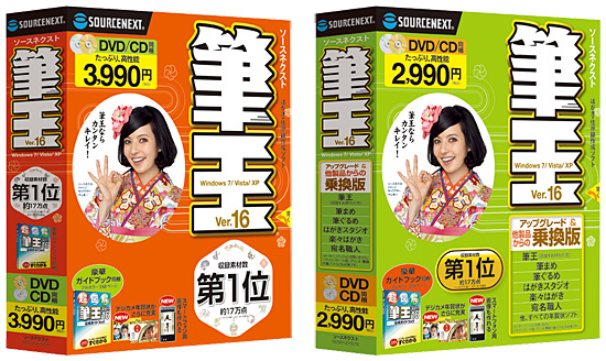 「筆王 Ver.16」(左)と「筆王 Ver.16アップグレード・乗り換え版」