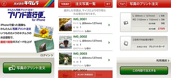 カメラのキタムラ、スマートフォン用プリント注文アプリ「プリント直行便」