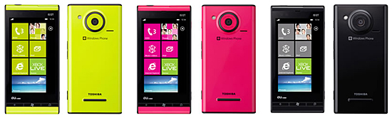 Windows Phone IS12T(左から、シトラス、マゼンダ、ブラック)