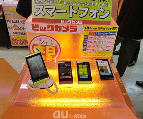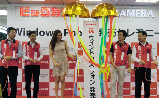 日本マイクロソフトは、8月25日、KDDIが8月25日から順次発売するauの最新スマートフォン「Windows Phone IS12T」の発売を記念し、ヨドバシマルチメディア Akibaとビックカメラ有楽町店で「Windows Phone IS12T by TOSHIBA」発売記念セレモニーを開催した。