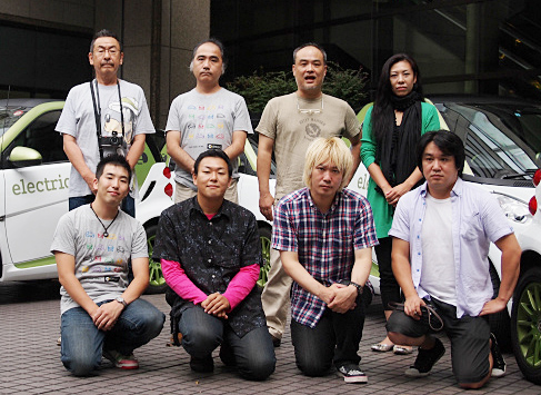 ジャーナリストの津田大介氏(下段右から2人目)と「スマート電気自動車」試乗リポーター7名