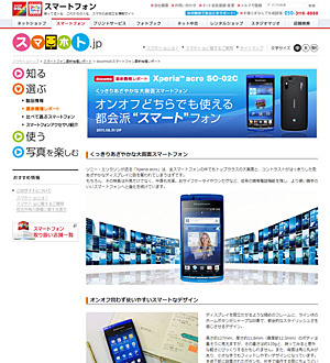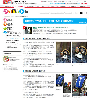 コンテンツは、「知る」「選ぶ」「使う」「写真を楽しむ」で構成。また、基本的な情報をわかりやすく紹介する「はじめてガイド」やスマートフォンの最新機種レポート、便利アプリ、撮影した写真を楽しむ方法などの情報を定期的に発信する。