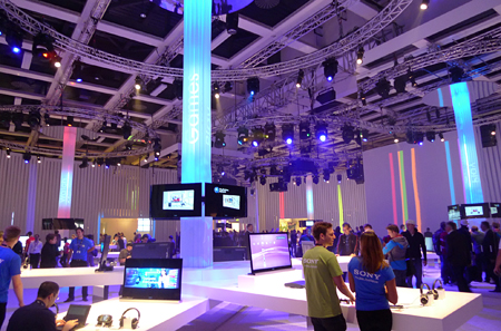 ゲーム、ムービー、音楽、写真の4テーマで製品を展示するソニーブース。