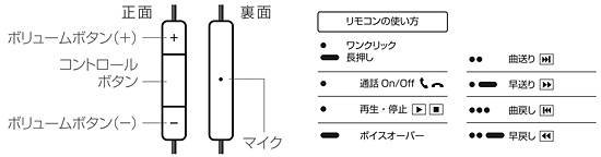 通話応答とリモコン機能の対応機種は、iPhone 4/3GS。リモコン機能のみ対応しているのは、iPod touch 4G/3G/2G、iPod classic(2008年秋モデル以降)、iPod nano 6G/5G/4G、iPod shuffle 4G/3G、iPad 2/iPad。