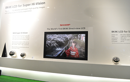 参考展示のなかで最も多く来場者が足を止めていたのは、解像度7680×4320を実現した「8K4K」を搭載したシャープの85V型液晶ディスプレイ。NHKと共同開発した製品で、欧州では初めての紹介になるという。
