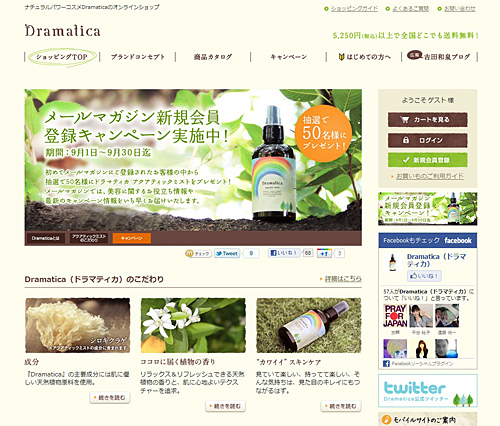 ナチュラルパワーコスメ「Dramatica」のオンラインショップのトップページ