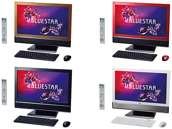 液晶一体型AVパソコン「VALUESTAR W」シリーズは、3D対応の23型ワイド液晶ディスプレイを搭載した「VW970/FS」と23型ワイド液晶ディスプレイを搭載した「VW770/FS」の2モデル、セパレート型デスクトップPC「VALUESTAR L」シリーズは、3D対応23型ワイド液晶ディスプレイが付属する「VL750/FS」、23型ワイド液晶ディスプレイが付属する「VL550/FS」、19型ワイド液晶ディスプレイが付属する「VL150/FS」の3モデルをラインアップする。「VW770/FS」は、クランベリーレッド、ハニーブラウン、ファインホワイト、「VW970/FS」と同じファインブラックの計4色のカラーバリエーションを揃える。