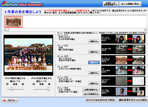 スキャナでPCに取り込んだ古い写真や暗い写真、明るすぎる写真、鮮やかさがない写真などをワンクリック操作で自動的に補正し、可能な限り忠実な色合いに再現する画像補正ソフト。