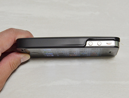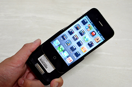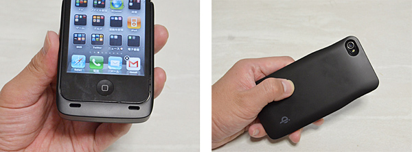 「WP-SL10A.BK」をiPhone 4に装着する方法は、一般的なiPhoneカバーと同じ。iPhone 4専用デザインなので、着脱は非常に簡単だ。違いを挙げるとすれば、ドック端子を接続する必要があるぐらいだろう。