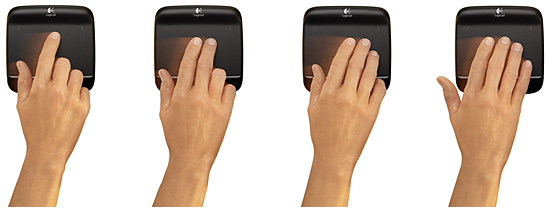 「TP500」は、カーソル移動、垂直/水平スクロール、スワイプ、クリックなどの操作を指先の直感的な動作でコントロールできるワイヤレス接続のマルチタッチデバイス。マウスジェスチャーとして、1本指操作でポイント、カーソル移動、ドラッグ、クリック、2本指操作で垂直/水平方向へのスクロール、3本指操作でページアップ/ダウン、ウェブページの戻る/進む、4本指操作でアプリケーション切り替え、ウインドウの最小化/元に戻す、Window 7スナップを行うことができる。