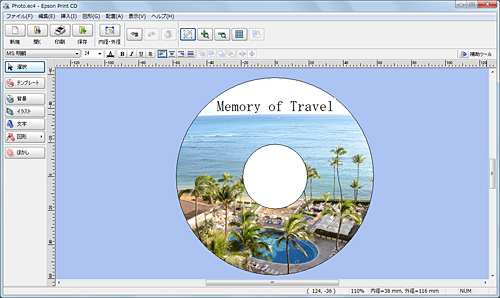 「Print CD」で写真の位置や文字の内容を調節
