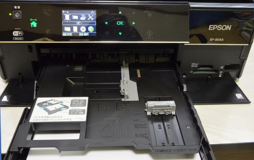 PCがなくても使いこなせるのも、「EP-804A」の特徴だ。SDカードやCFカード、マルチメディアカード、メモリースティック、xDピクチャカードなどに対応するカードスロットを搭載。液晶画面でメモリカードに保存している画像を選んで印刷するのだが、実際にやってみると、画像表示の切り替えが速く、快適に選ぶことができた。