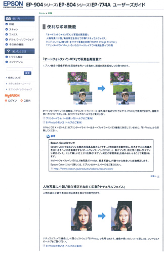 一般的な書類の印刷も、細かい文字をつぶれることなく印刷できるし、書類のなかの画像画質も申しぶんない。試しに「EP-804A」のオンラインマニュアルをPDF化したものを印刷した。プライベートだけでなく、ビジネス用途としても、十分に実用に耐える品質だといえる。