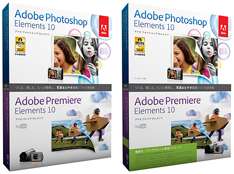 Photoshop Elements 10 & Adobe Premiere Elements 10 日本語版(左から通常版、乗換え・アップグレード版)