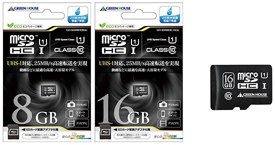 グリーンハウス、UHS-I対応の高速microSDHCカード「GH-SDMRHC*U」シリーズ