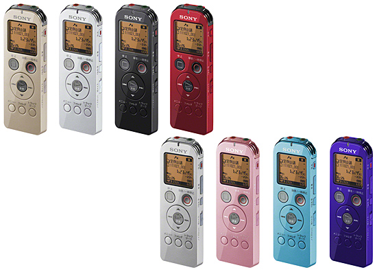 カラーは、「ICD-UX523F」がシャンパンゴールド、ホワイト、ブラック、レッド、「ICD-UX523」がシルバー、ピンク、ブルー、バイオレット。対応OSは、Windows 7/Vista/XP。サイズは幅36.6×高さ102×奥行き13.7mm、重さは約58g。「ICD-UX523F」には、13.5mmドライバユニットを搭載した密閉型インナーイヤーレシーバーが付属する。