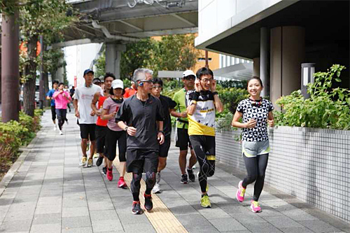 キックオフイベントでは市橋有里さんの指導で、約5kmの皇居の周囲をランニング