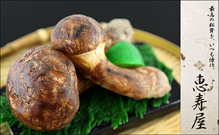 本物そっくりの「マツタケ」を丸ごと2本乗せ、カボスを添えた
