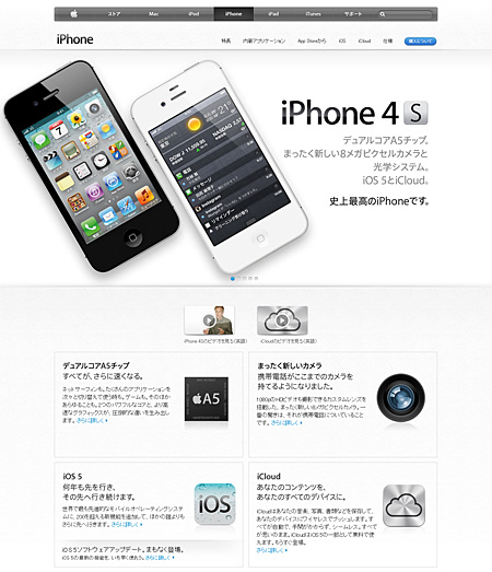 米アップル、カメラ機能を強化した「iPhone 4S」を発表、日本ではソフトバンクとauが販売