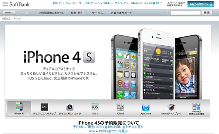 →ソフトバンクモバイルの「iPhone 4S」紹介ページ