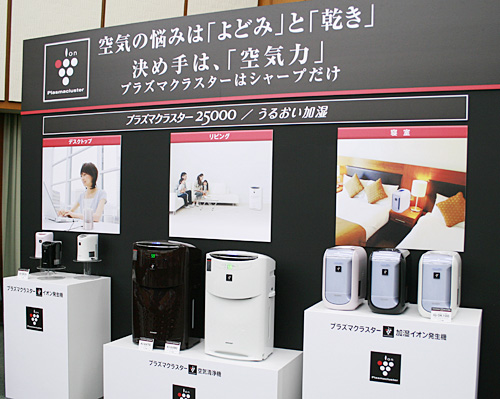 「高濃度プラズマクラスター25000」を搭載したプラズマクラスターイオン発生機とプラズマクラスター加湿空気清浄機(中央)