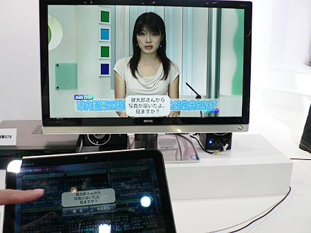 参考展示のAndroid搭載セットトップボックス(STB)は、多チャンネルテレビ放送やビデオオンデマンド(VOD)を光ファイバーで提供するサービス「auひかり」や、ケーブルテレビ事業者を通じて提供することを想定している。タブレット端末の写真をテレビに表示したり、メールを確認したりなど、特定のテレビメーカーに限らず、テレビとタブレット端末が連携する。