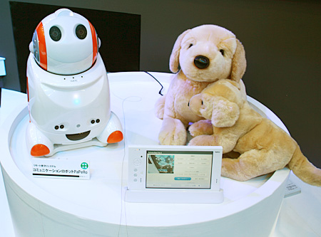 人の代わりをしてくれるいう点で、ロボットは大切な存在である。NECが参考出展するコミュニケーションロボット「PaPeRo」は、最新のクラウド端末「LifeTouch」と連携して、自宅の監視・セキュリティや高齢者のみまもりに活躍する。