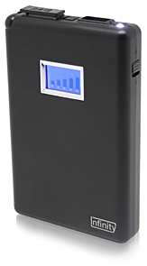 USB接続でiPhoneやAndroid搭載スマートフォンなどを充電。一般の携帯電話やゲーム機、iPodやiPadにも対応する。スマートフォンであれば、2回以上フル充電することができ、iPadの充電は約48%まで。液晶表示で、電池残量を0~100%まで表示するので、どれくらいスマートフォンを充電できるかがわかる。LEDライトの連続点灯時間は、フル充電状態で約300時間。