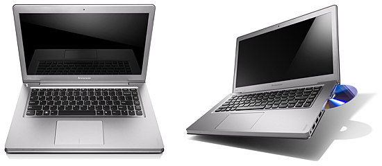 スロットイン型ドライブを備えた14型ノート「IdeaPad U400」