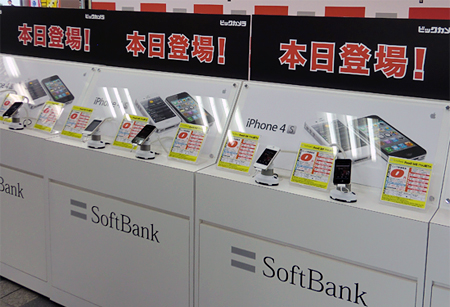・ビックカメラ有楽町店でみる「iPhone 4S」、ソフトバンクとKDDIの違い