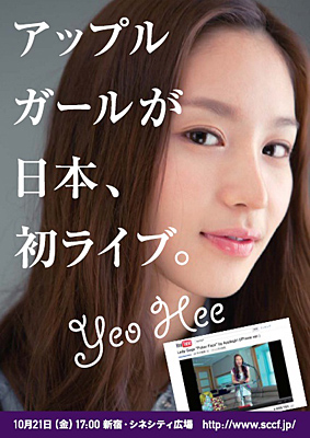 日本初ライブ「LOTTE PRイベント Yeo Hee as Applegirl LIVE」では、話題のパフォーマンスを日本で初めて披露する。ライブは、10月15日から23日まで開催しているアートイベント『学生クリエイターズ・フェスタ in 新宿 2011』のライブステージイベントの一つとして実施する。会場は東京都新宿区歌舞伎町の「シネシテイ広場 特設ステージ」、日時は10月21日17時~18時。ライブの模様は、Ustream、ニコニコ生放送でも配信する。