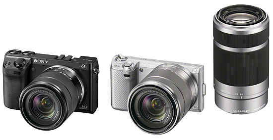「発売日未定」となった「NEX-7」(左)と「NEX-5N」のダブルズームレンズキット