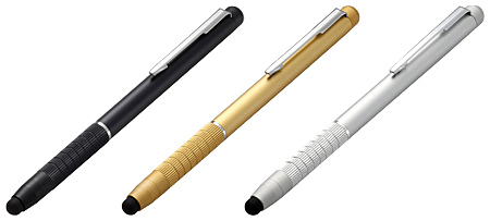約125mmのロングタイプのタッチペン。本体は軽量なアルミ素材で、ペン先近くに刻みを施すことで、指先へのフィット感を高めている。シリコンゴム製のペン先は、コンパクトで柔らかく、滑らかで自然な操作ができる。
