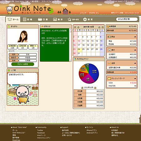 ゲーム感覚で楽しく使用できる無料クラウド家計簿「Oink Note」
