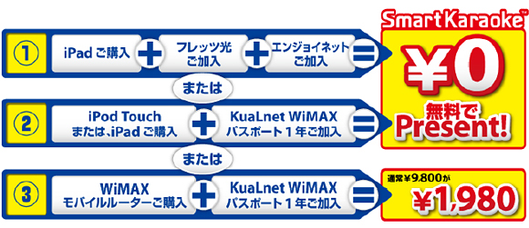 発売記念キャンペーンとして、iPadやiPod touch、WiMAXモバイルルータの購入と同時に、高速ワイヤレス通信サービス「エディオン クオルネット」やインターネット接続サービス「エンジョイネット」に加入することで、「スマカラセット」の無料プレゼントや特別割引を行うキャンペーンを行う。期間は11月1日から12月31日まで。