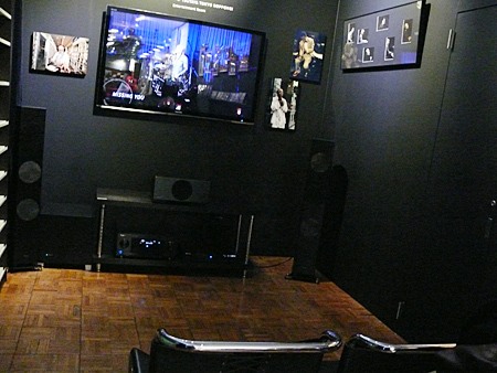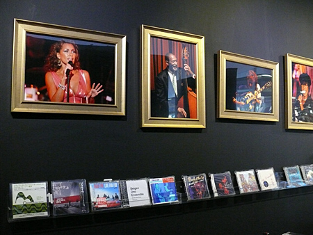 イベントスペースは、「ブルーノート東京」の店内をイメージしたフロアに、パイオニアのAVアンプ「VSA-LX55」とスピーカーシステム「Series 7」を設置。5.1サラウンドでジャズが視聴できるほか、スペース内に陳列しているジャズ関連のブルーレイディスク(BD)やDVD、CDのタイトル約2000種類を購入・レンタルすることができる。また、「ブルーノート東京」で行われたトップ・アーティストによるライブの写真展示も見ものだ。