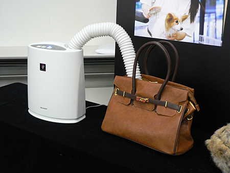 「DI-AD1S」は、本体のロングホースからプラズマクラスターイオンと温風や送風を吹き出すことで、衣類やカバン、フトン、押入れの脱臭・乾燥、カビや静電気の抑制などさまざまな生活シーンで活用できる新機軸の製品。イヌやネコなどを洗った後のドライヤーとしても使用できる。