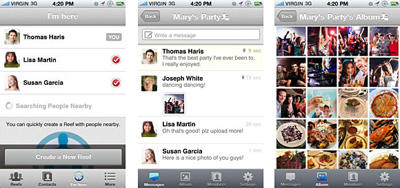 Facebook、Twitter、mixiのアカウントでも利用でき、それぞれのSNS上のリストをインポートしてグループを作成できる。さらに、スマートフォンの位置情報を活用することで、自分の近くにいる電話番号やSNSのIDを知らないユーザーとも、連絡先を交換することなくグループを作成できる。また、写真投稿機能で、メンバー同士で写真を共有することもできる。